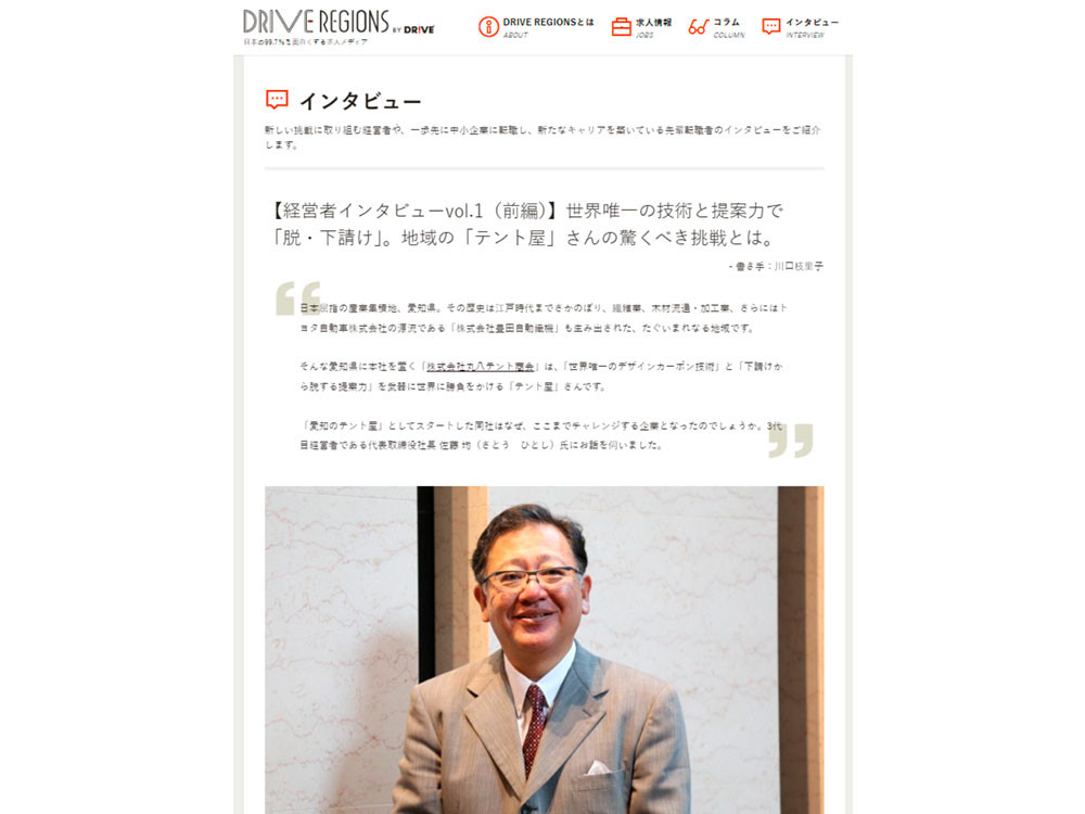 当社代表取締役社長 佐藤均のインタビューがWEBメディア「DRIVE REGIONS」に掲載されました。