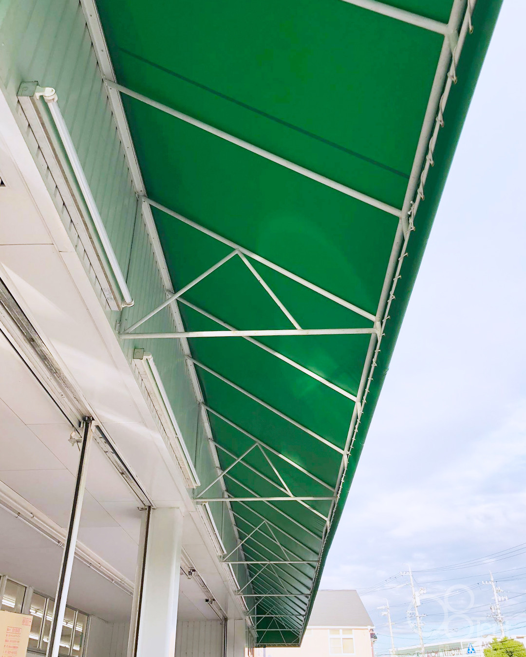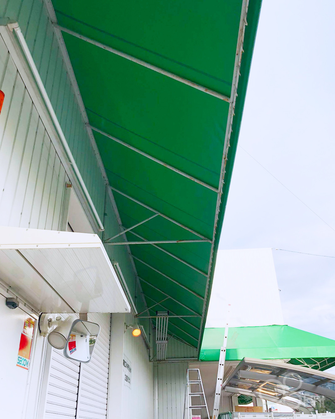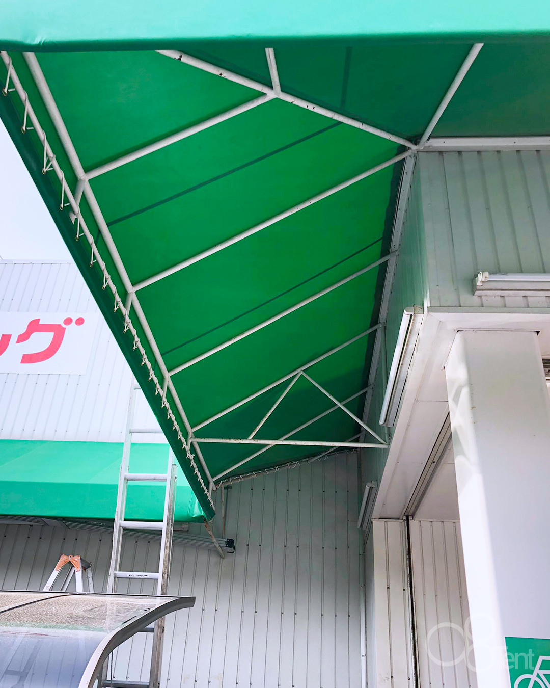 ドラックストアの店舗用テントのシート張替えを行いました。