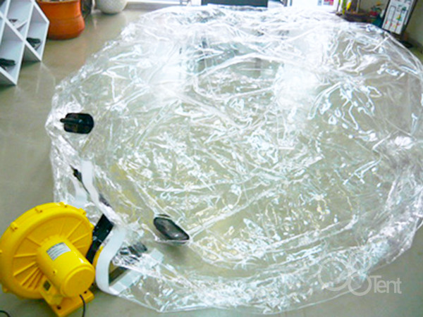 ビッグエアーボールは直径1.6mの大きいエアーテントで、プールや池など水に浮かべることができる商品です。サイズは約2m。重量は2キロほどです。一重タイプと二重タイプをご用意しております。オプションの電動ブロアーで空気を入れてて膨らませます。