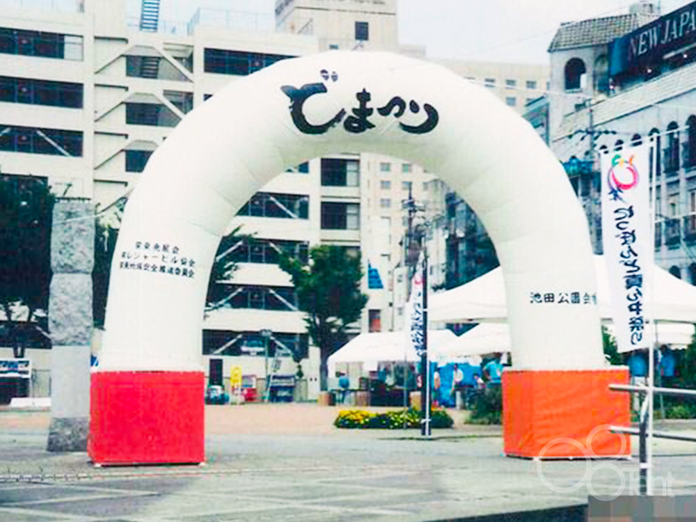 エアーアーチのご紹介です。イベント会場の入り口にあるととても印象に残ります。イベントのゲート場など、広告、宣伝としても活躍します。ロゴ入れも可能です。形状、サイズ、カラーリング等、特注品の製作が可能となっております。