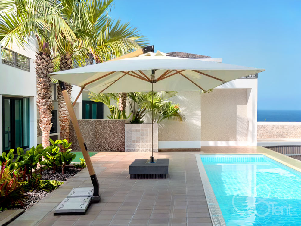 - 4m角の広範囲を覆うことができ、センターポールのないより広い空間を創造