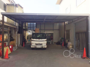 上屋テントを建物間の荷捌きスペースの雨よけとして新設新着!!