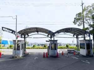 駐車場ゲート屋根の施工詳細 駐車場の入出場ゲート上のテント屋根張替えを、愛知県名古屋市・展示施設パーキングにて行いました。 施工中の様子