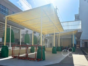 駐輪場テント屋根を保育園敷地内・園庭横に新設施工|愛知県名古屋市新着!!