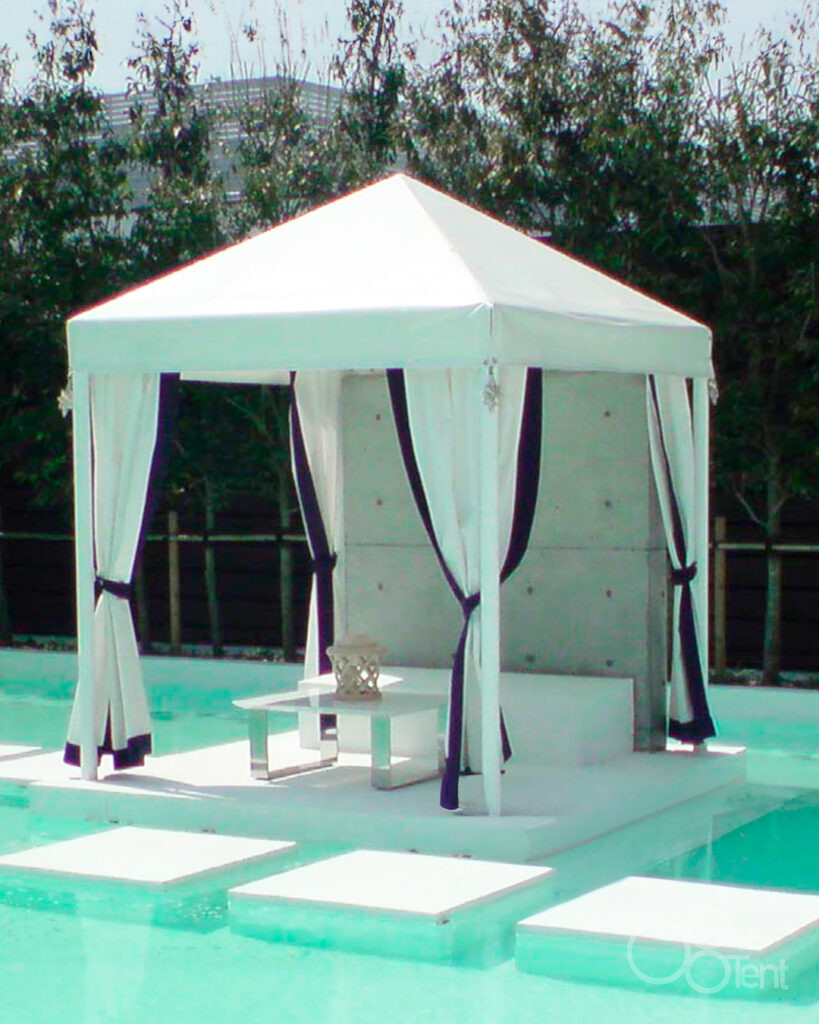 ガゼボテントを結婚式場・屋外スペースの水辺に施工