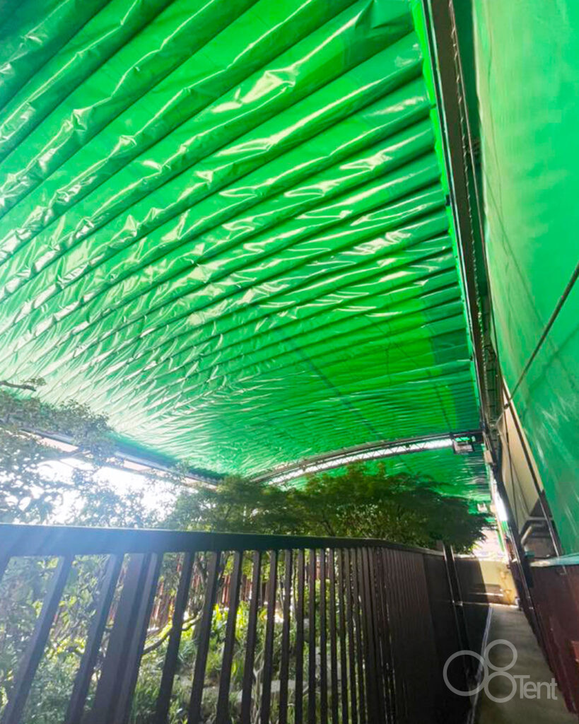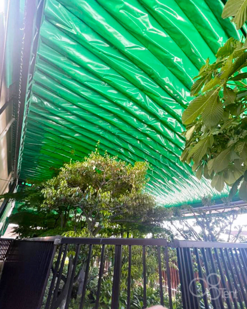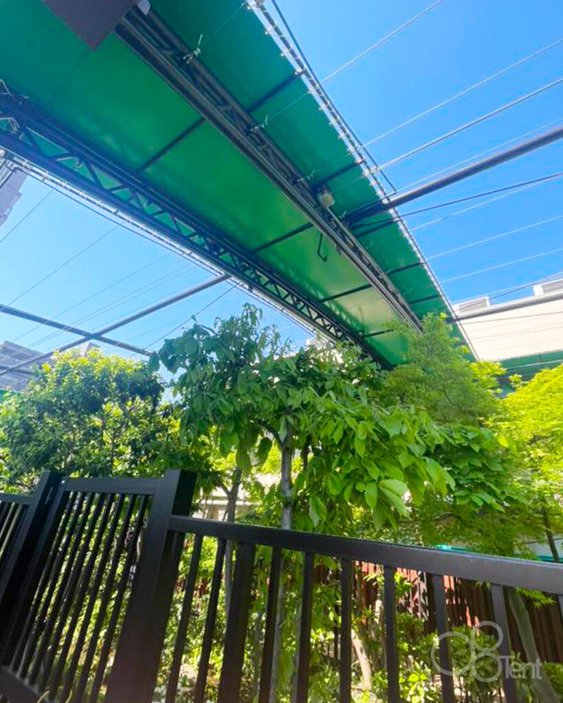 開閉式テントは天井のシート部分を開閉することができるテント屋根で、屋外空間の日よけや雨よけ用途でご利用いただけます。ご利用目的やシーンに応じて、サイズ・テント生地・形状・オプション選択とオーダーメイドで開閉式テントの製作・施工を承っております。