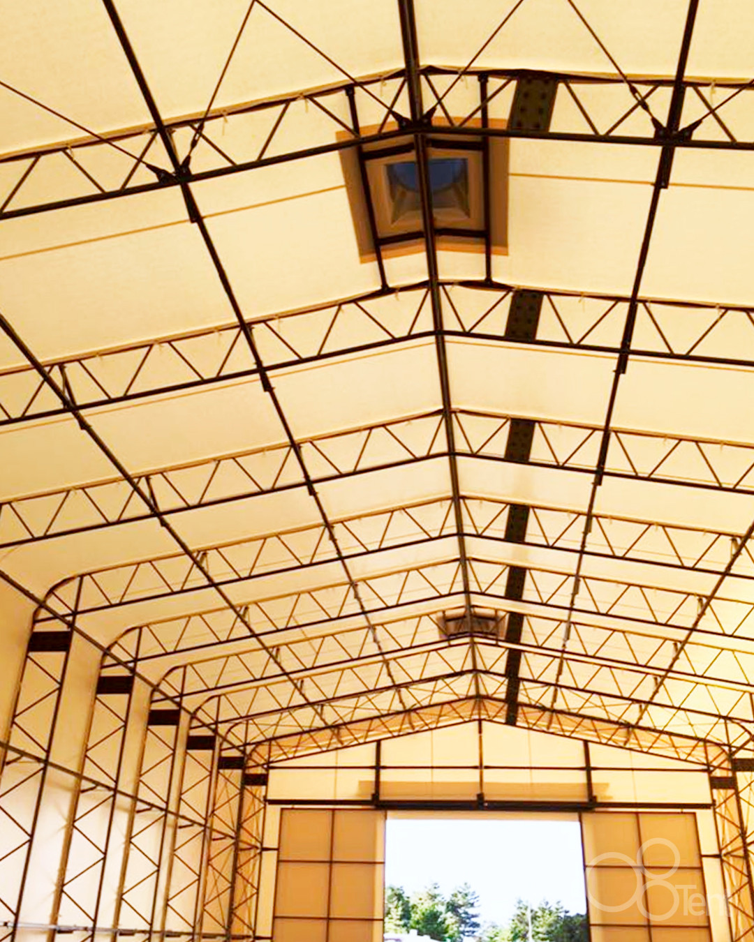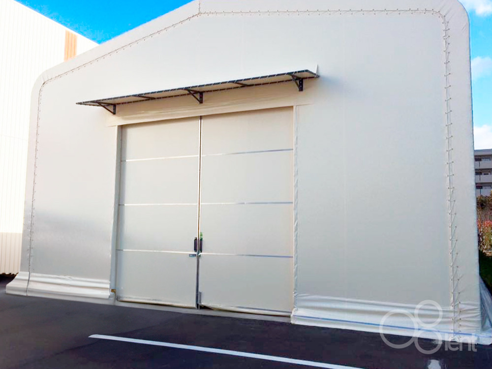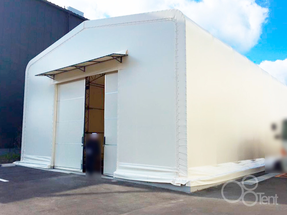 テント倉庫は、柱のない大空間を作り、補完物の配置や移動などの自由度の高い業務スペースを実現するテント製の倉庫です。出入口も大きくとることができ、重機や運搬時の出入りもスムーズです。