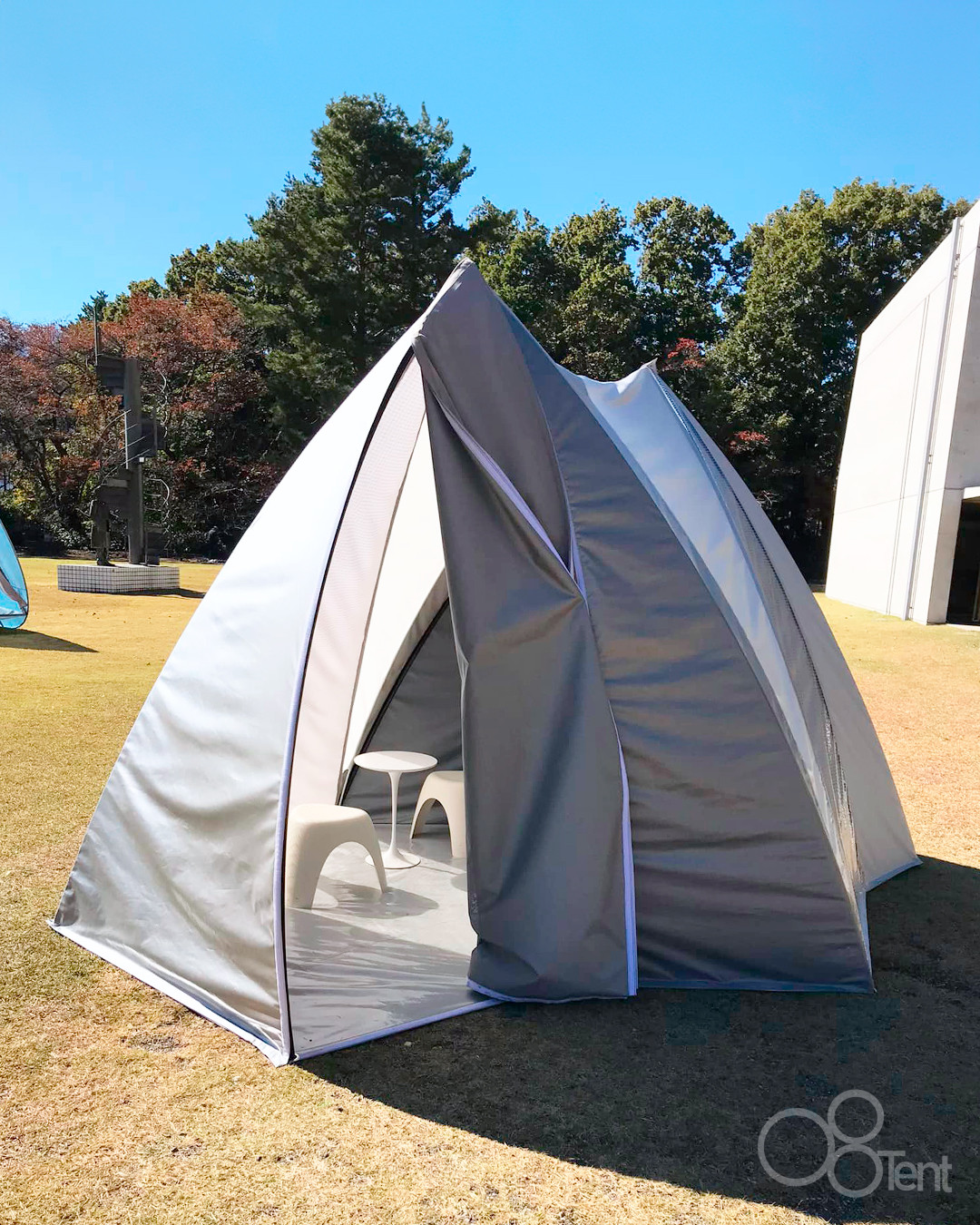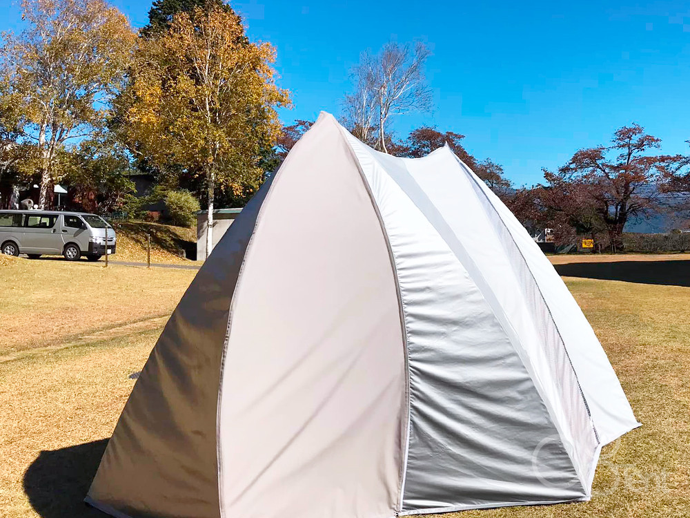 通り抜けられる道のようなデザインのテントです。出入り口が2カ所設けられています。