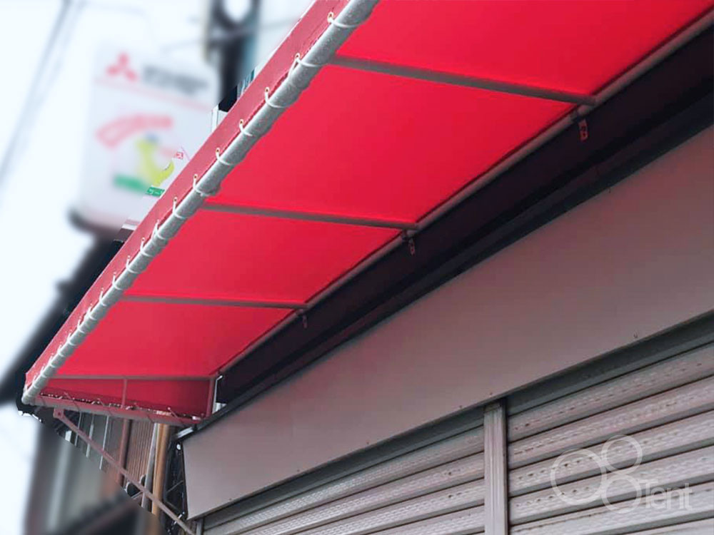 店舗用テントとは、お店や建物の入り口・外壁・窓周辺などに取り付ける日よけ・雨よけとして利用できる固定式のテント屋根です。