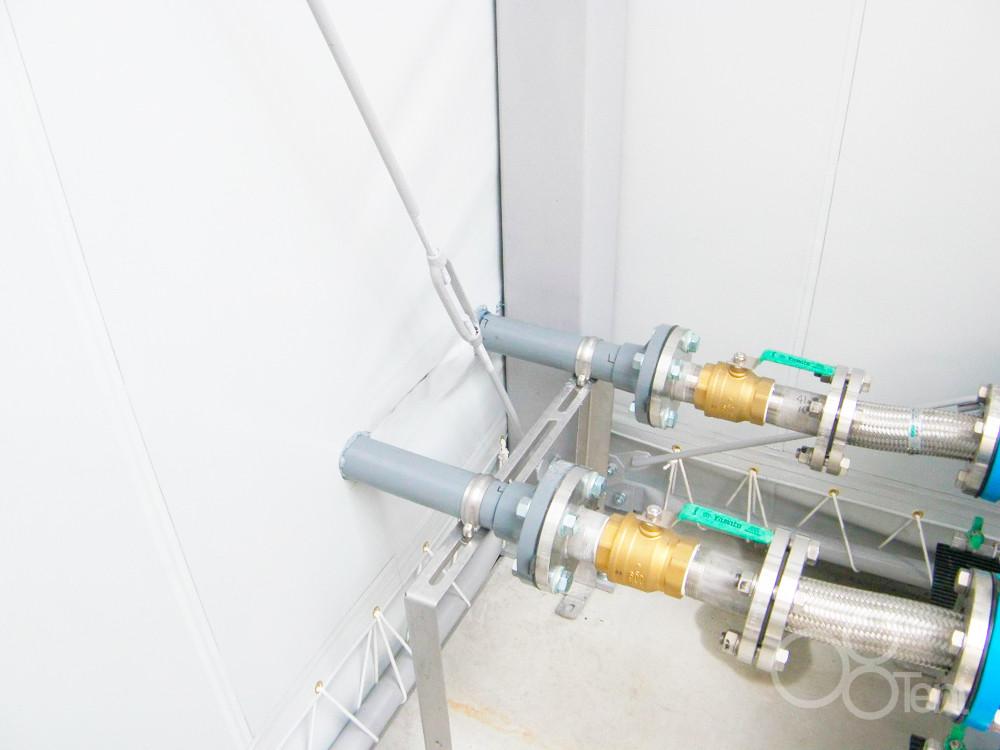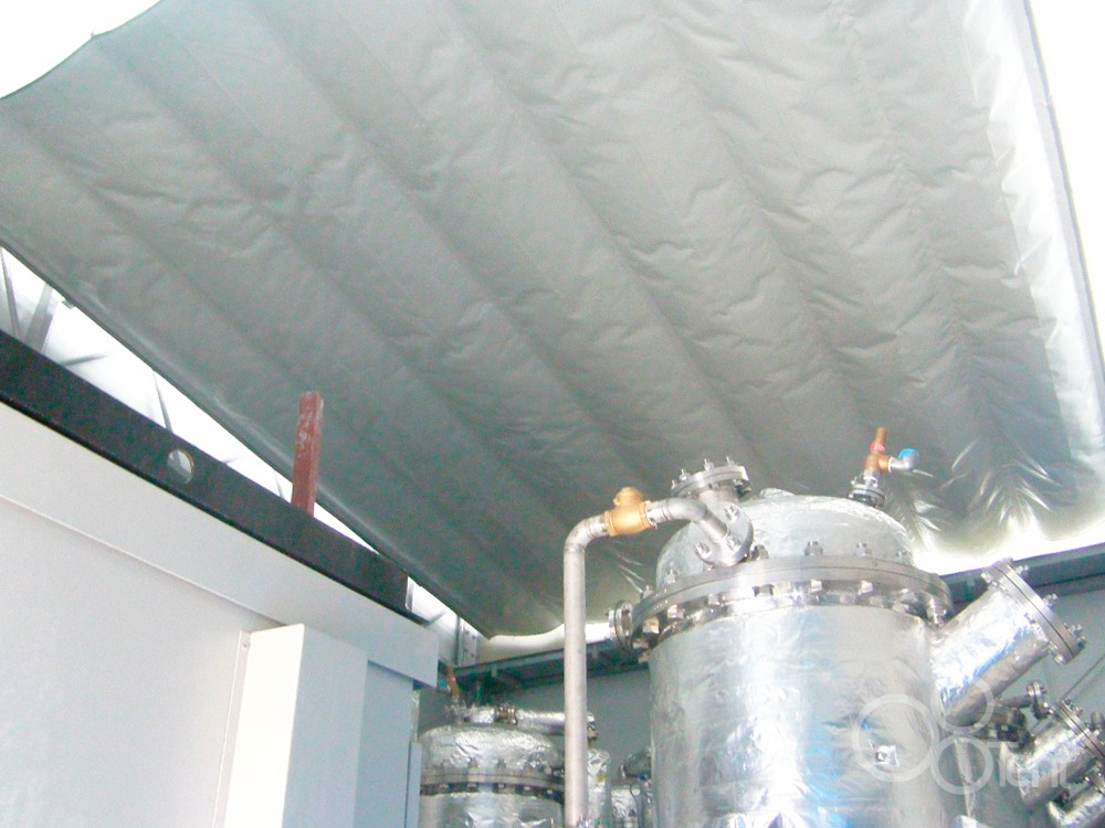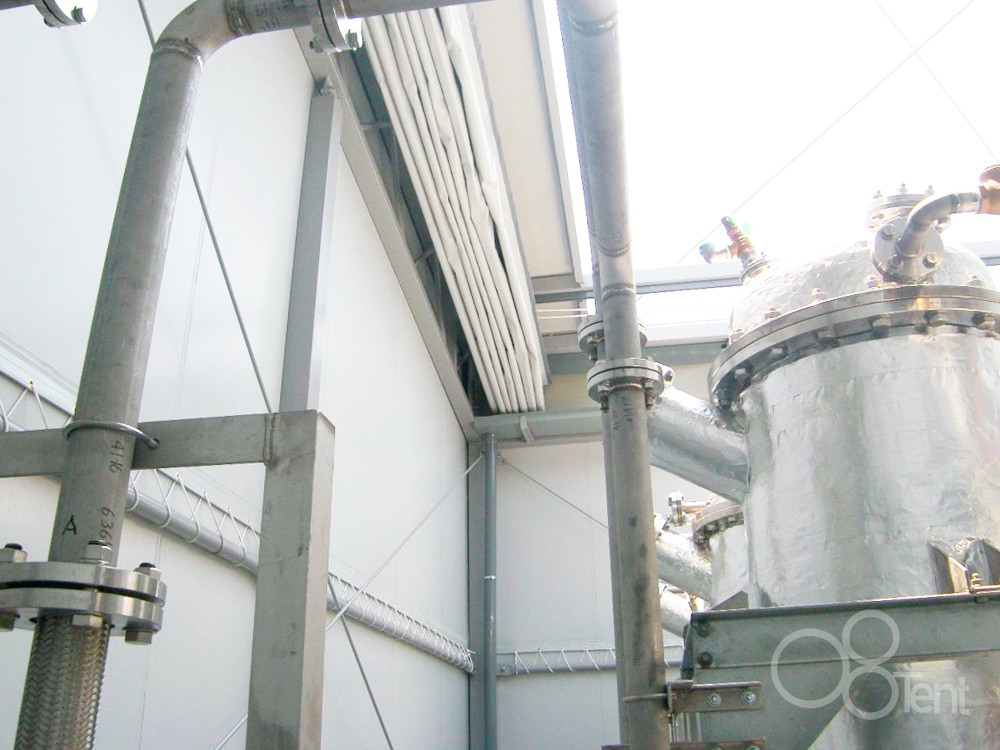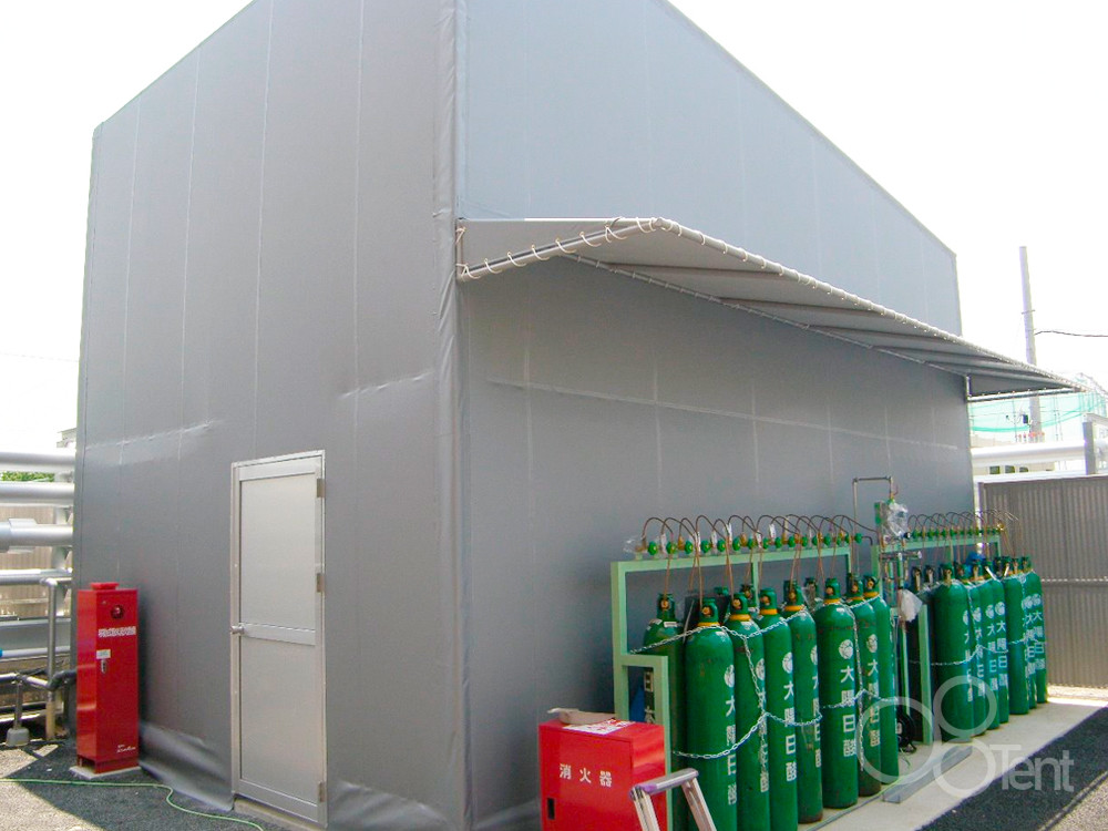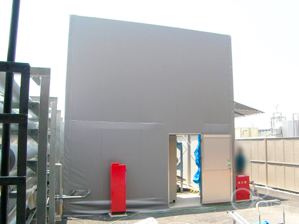 機械設備室の雨よけとして、屋外用間仕切りブース(天井開閉式)を施工いたしました。