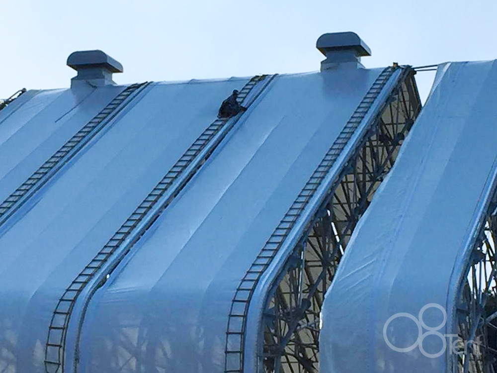 廃棄物の最終処分場にて、被覆型最終処分場の上屋テント施工に携わらせていただきました。