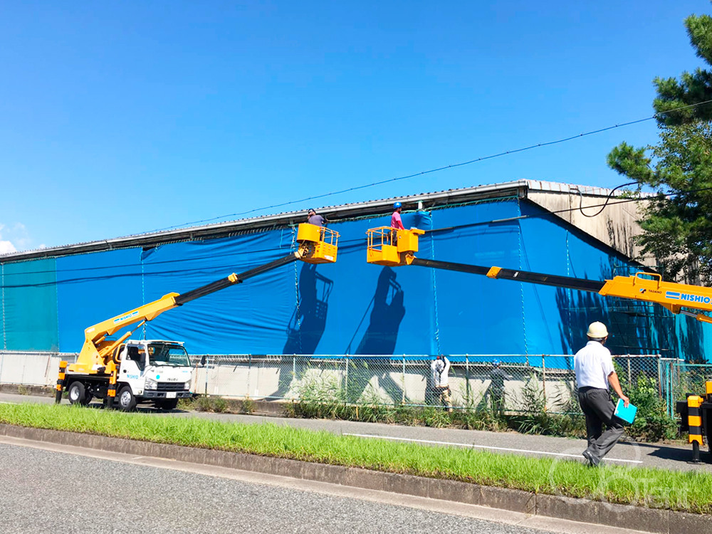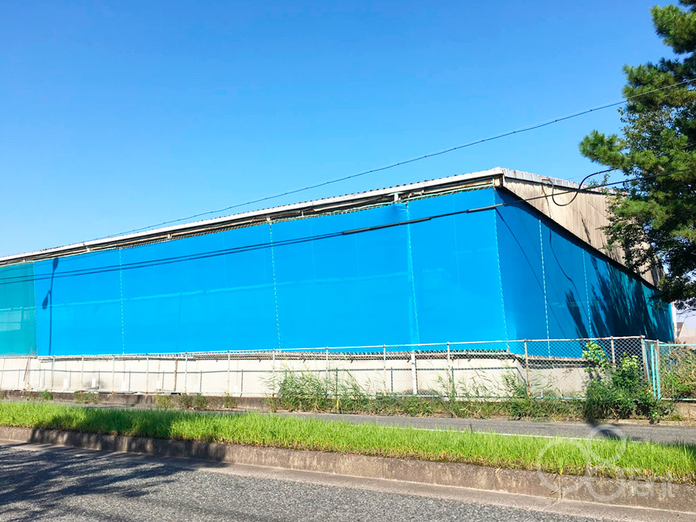 物流施設の側面テント(外周の間仕切り壁)のシート張替えを承りました。