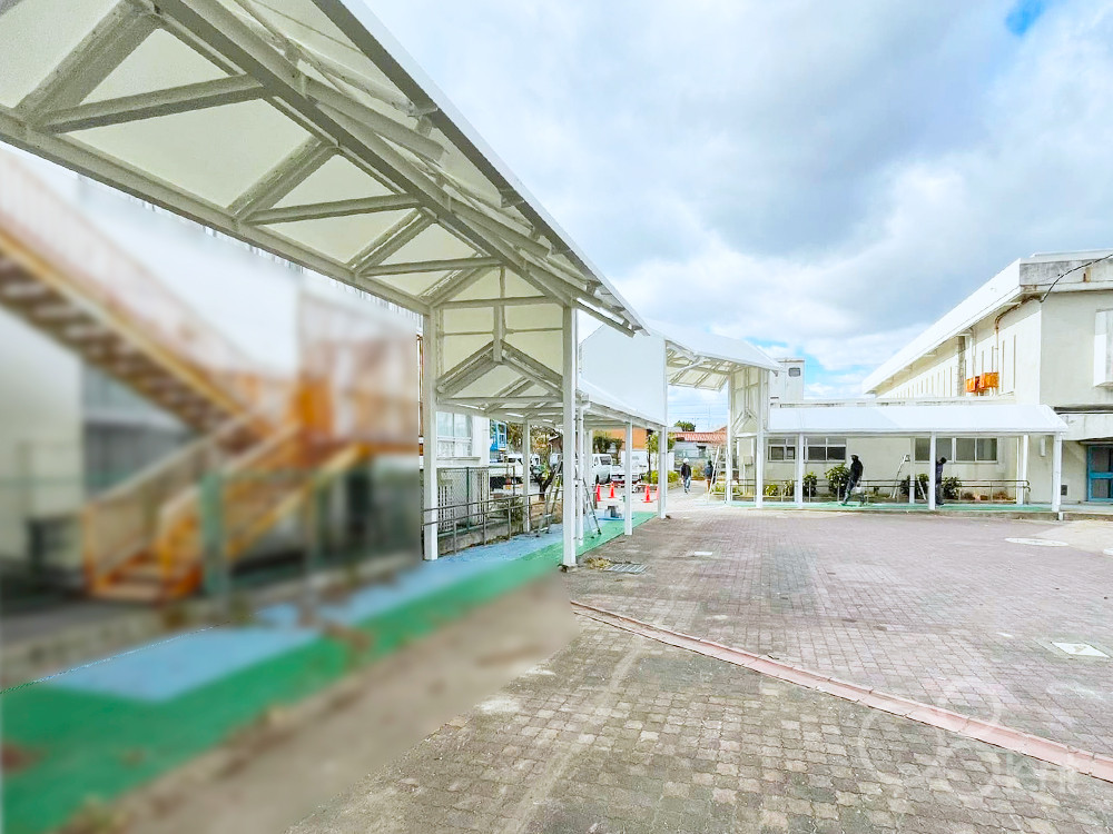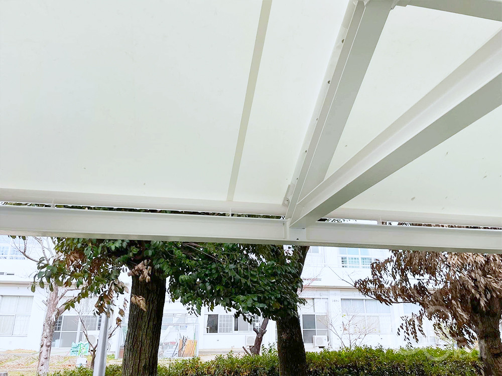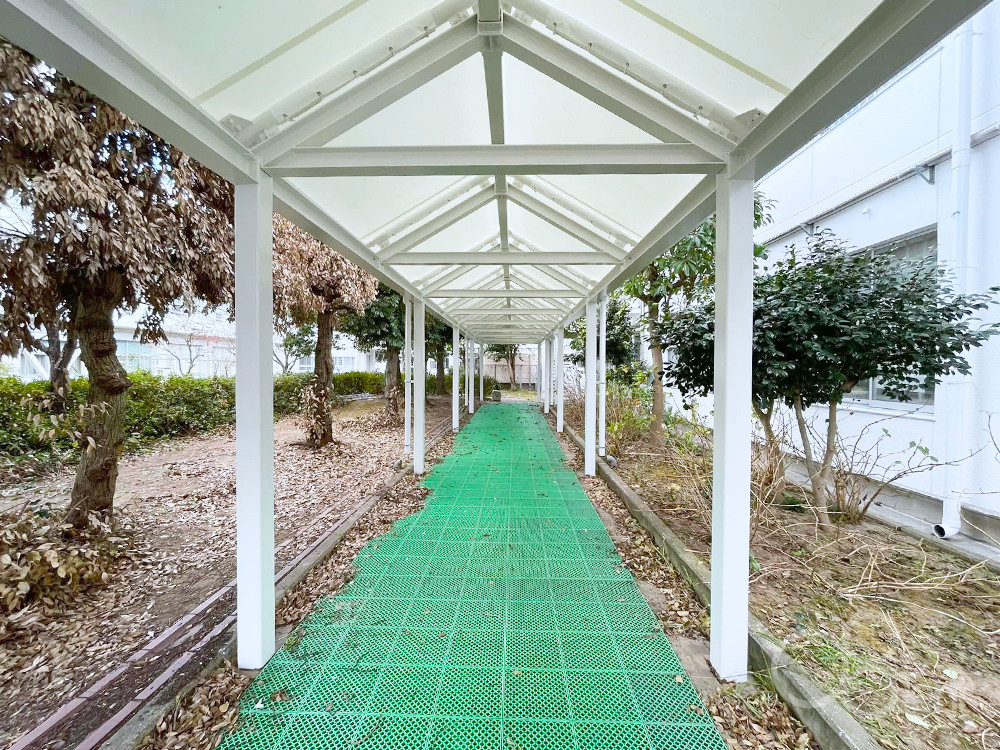 小学校渡り廊下に通路屋根テントを施工|愛知県半田市