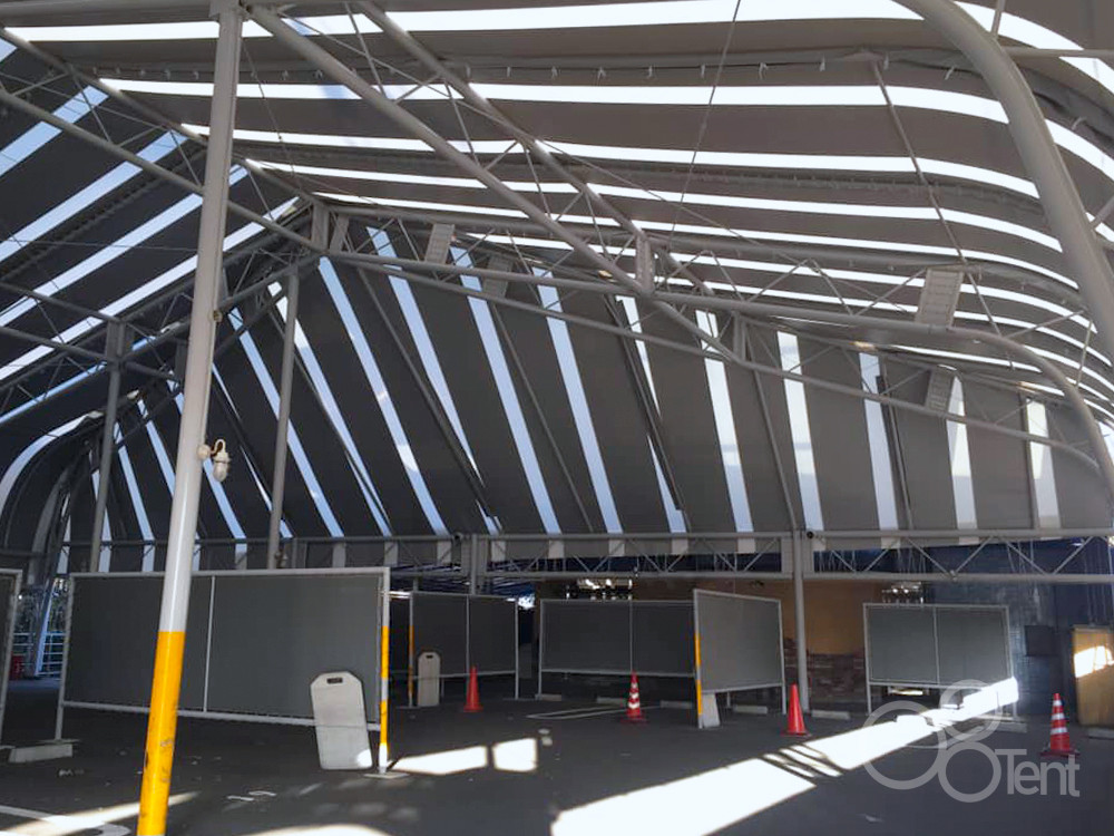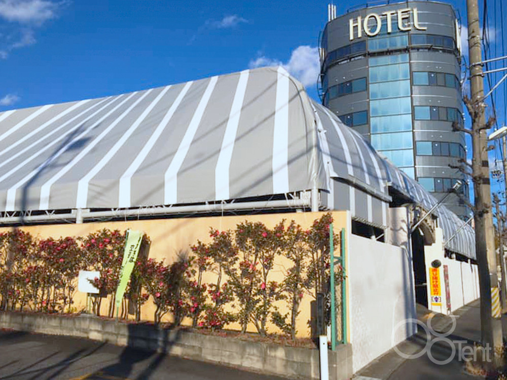 駐車場テント屋根のシート張替えを、愛知県刈谷市のホテル駐車場にて行いました。