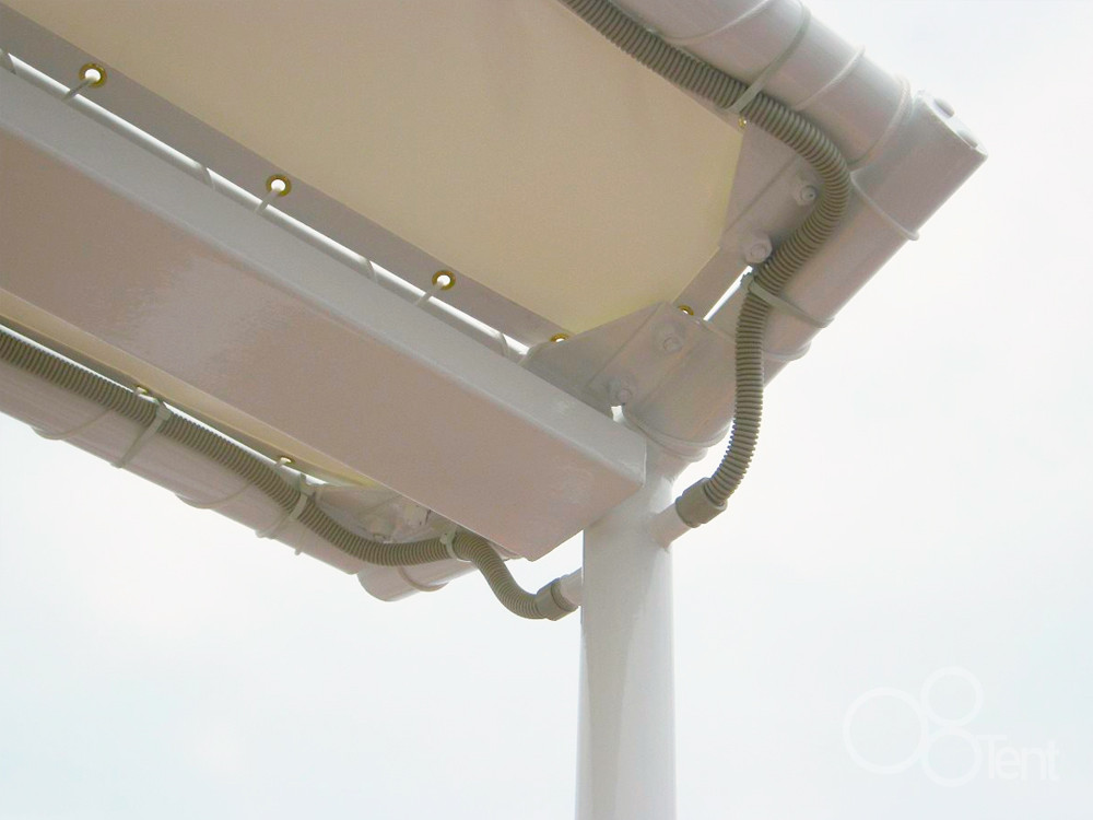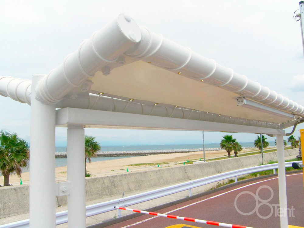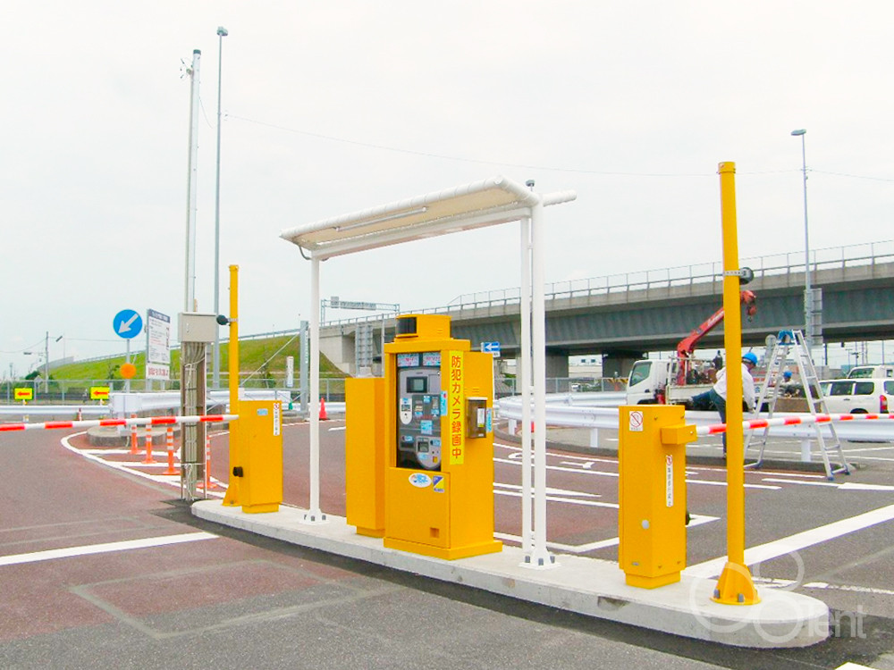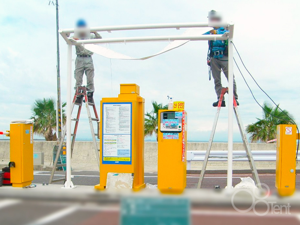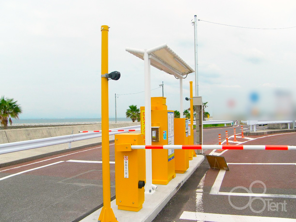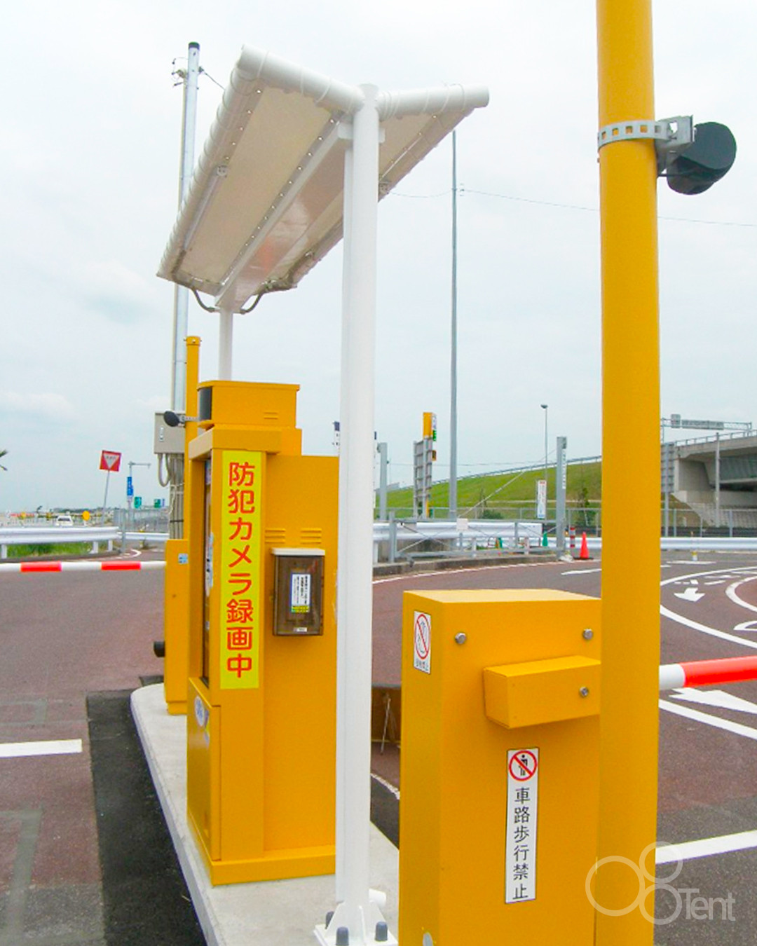コインパーキング出入口に発券機・精算機用テント屋根を施工いたしました。