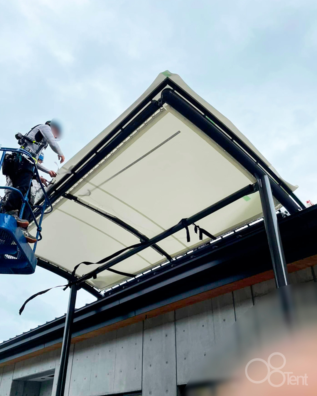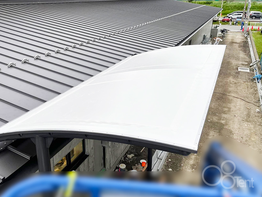 片持ちの固定テント屋根を建物と繋がるように施工|岐阜県大垣市
