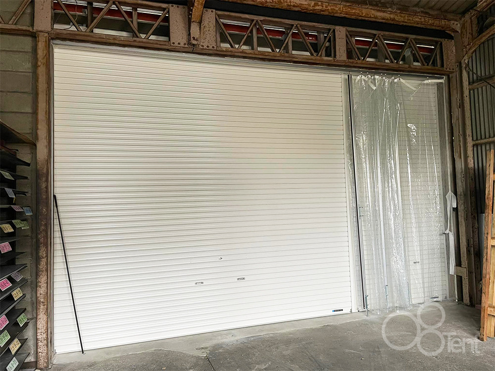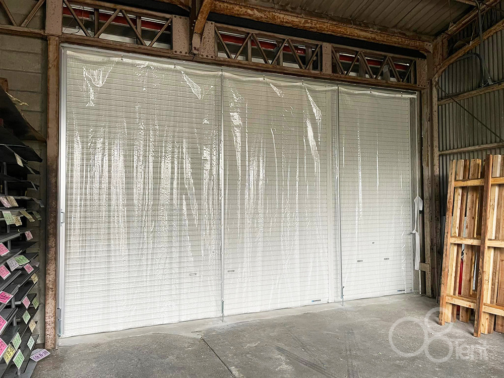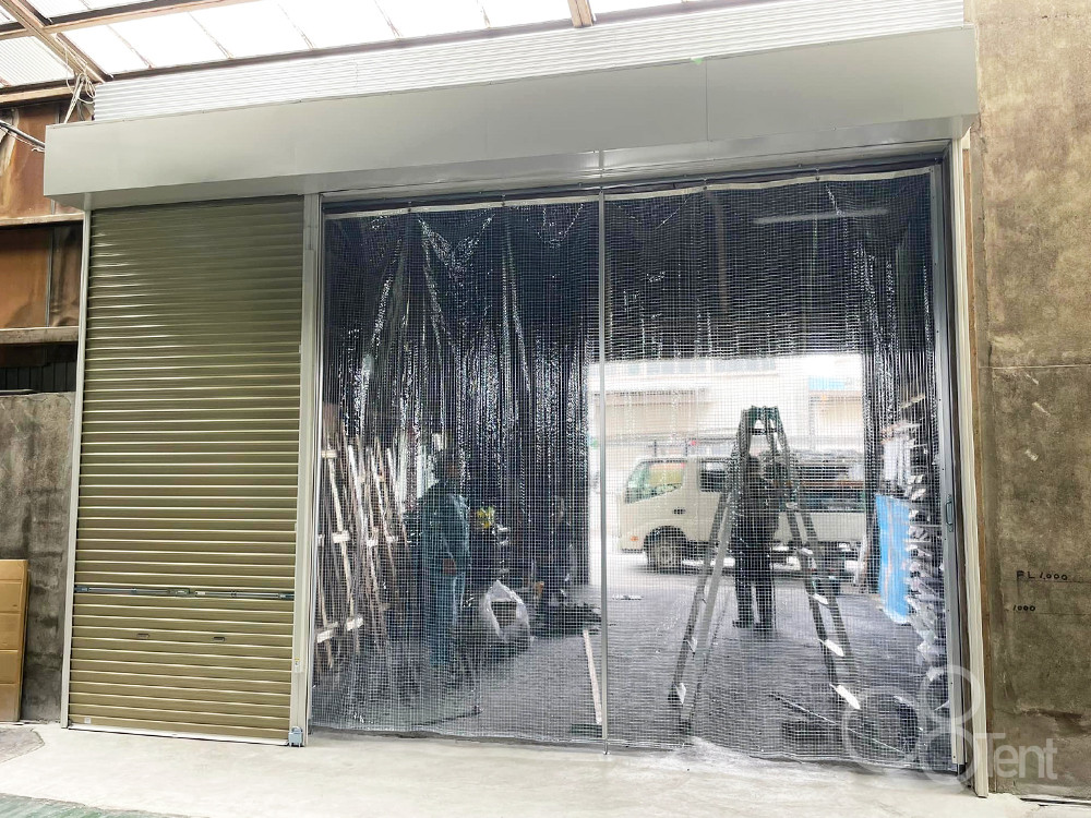 透明カーテンを作業所入口シャッター部分に施工いたしました。