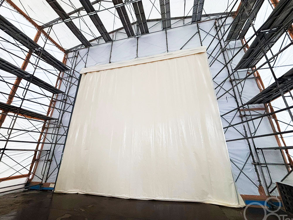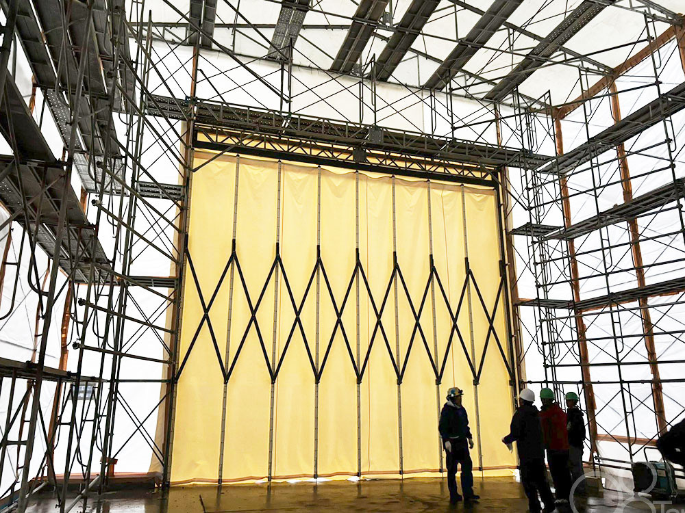 間仕切りカーテンをごみ処理場施設の間仕切りとして2か所施工いたしました。高さ6.5mの大規模カーテンです。