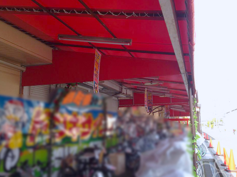 店舗用テント・通路テント屋根のシート張替えを、愛知県名古屋市・バラエティショップ店舗にて承りました。