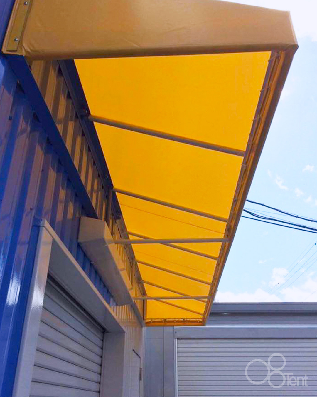 店舗用テントとは、お店や建物の入り口・外壁・窓周辺などに取り付ける日よけ・雨よけとして利用できる固定式のテント屋根です。