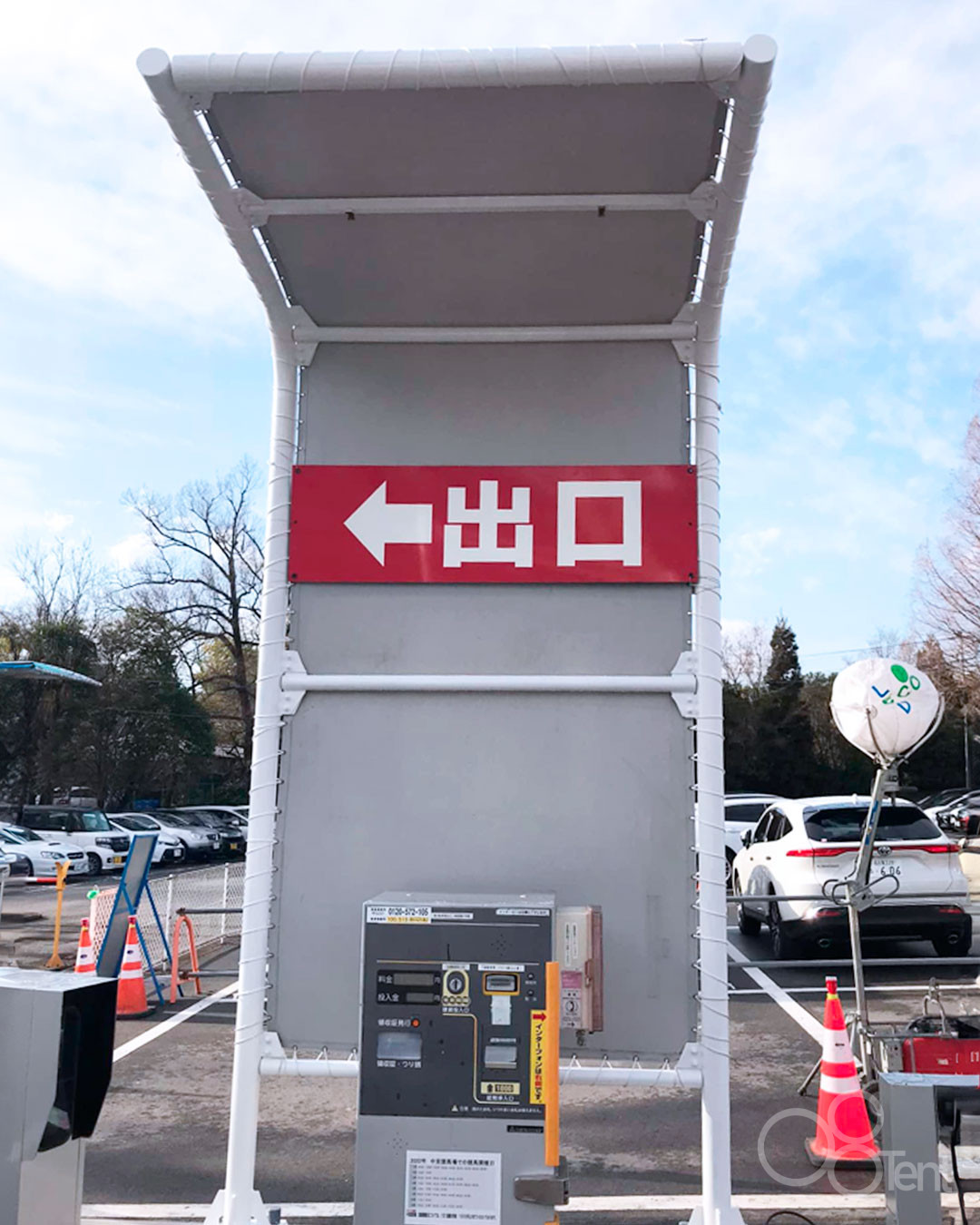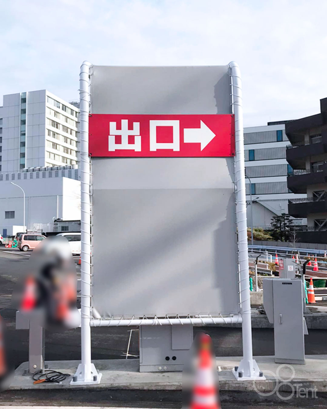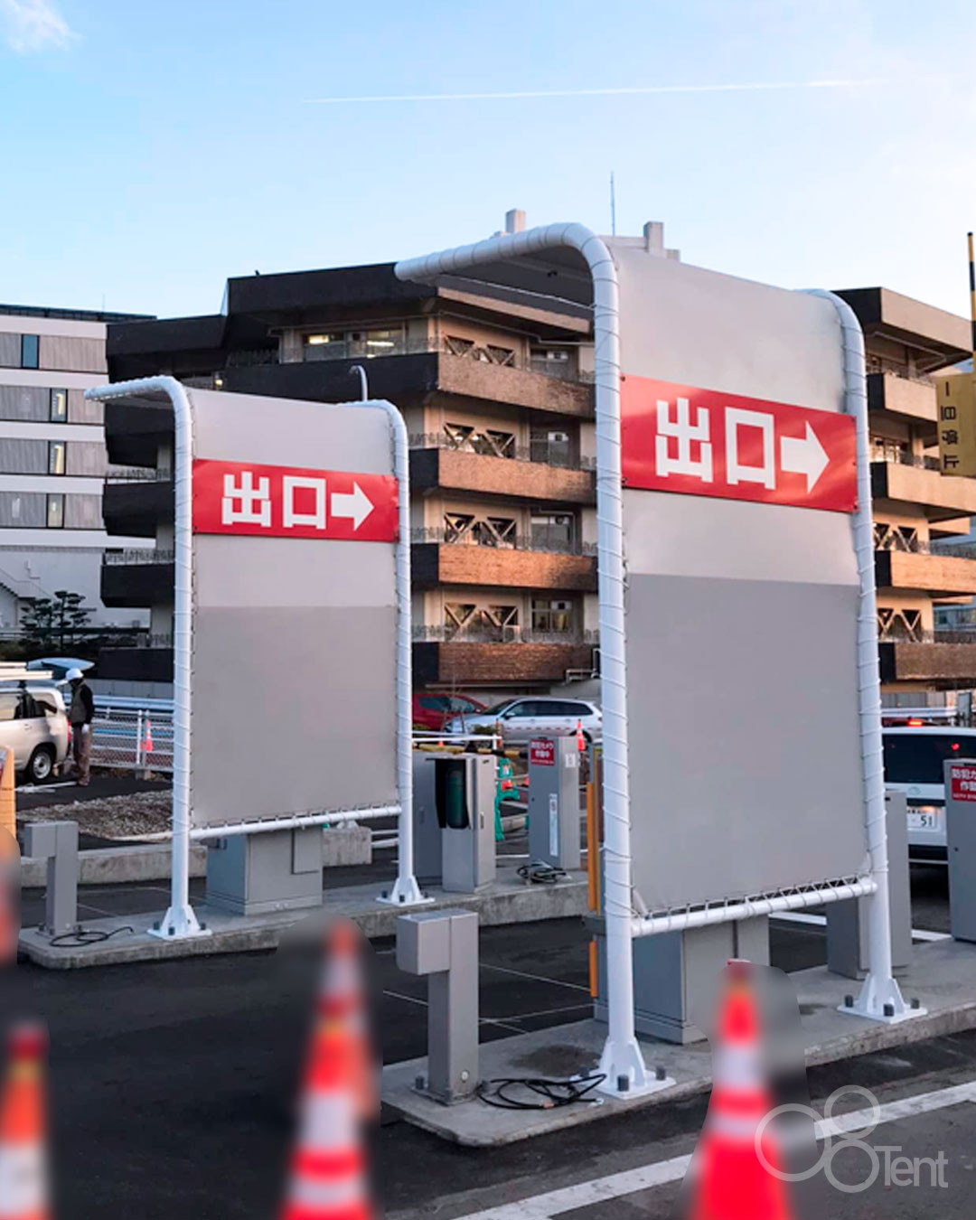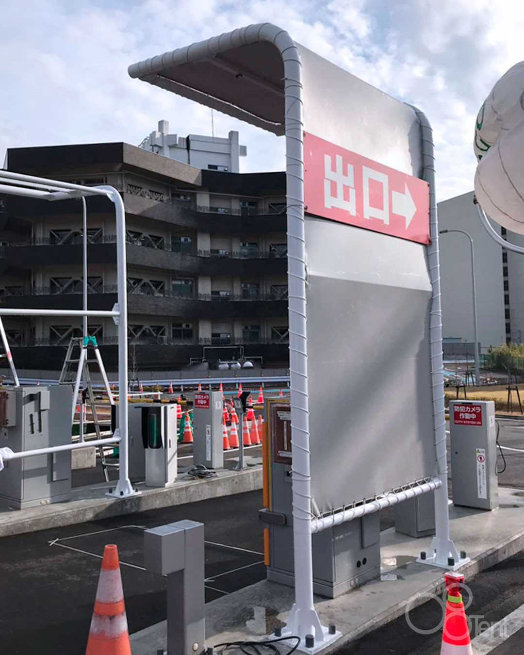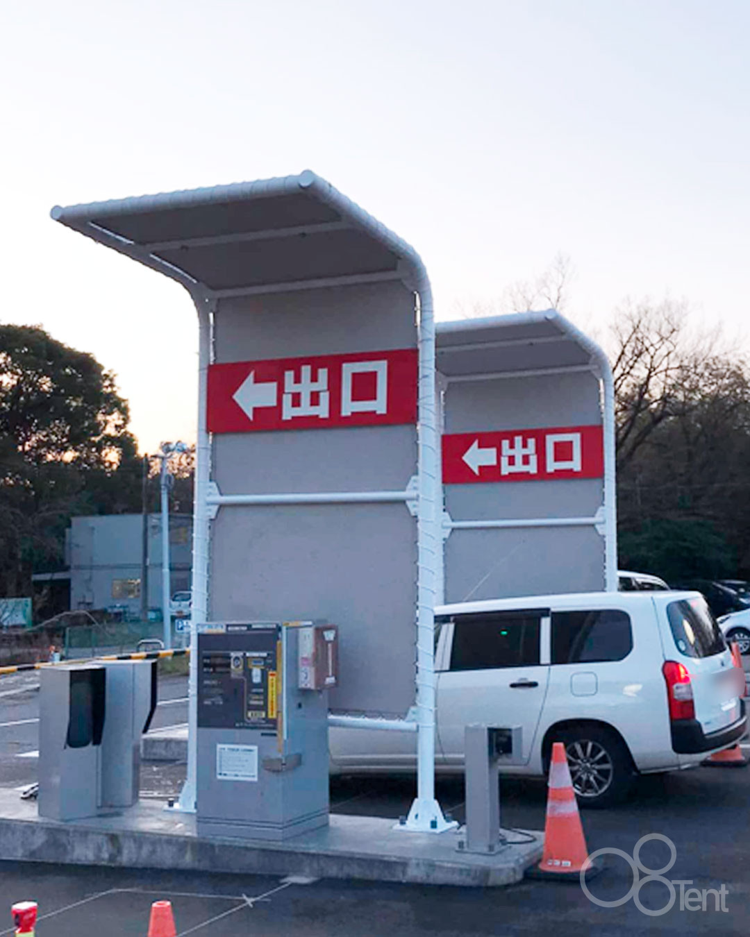 案内表示付きの精算機テント屋根(片持ち屋根)