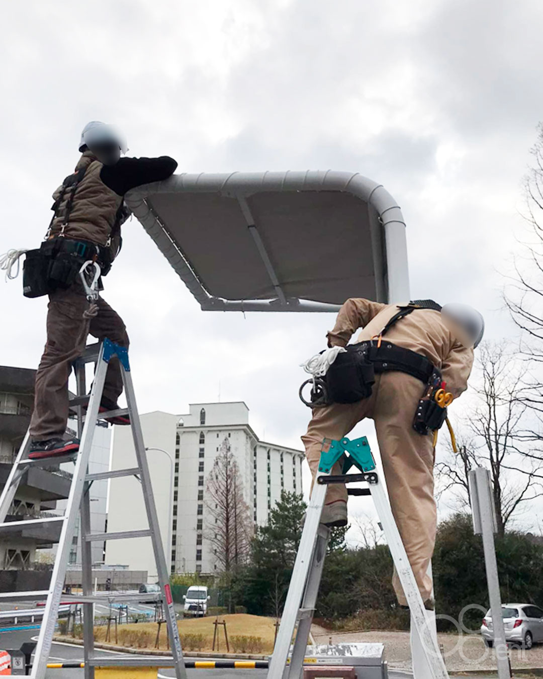 案内表示付きの精算機テント屋根(片持ち屋根)の移設工事を承りました。