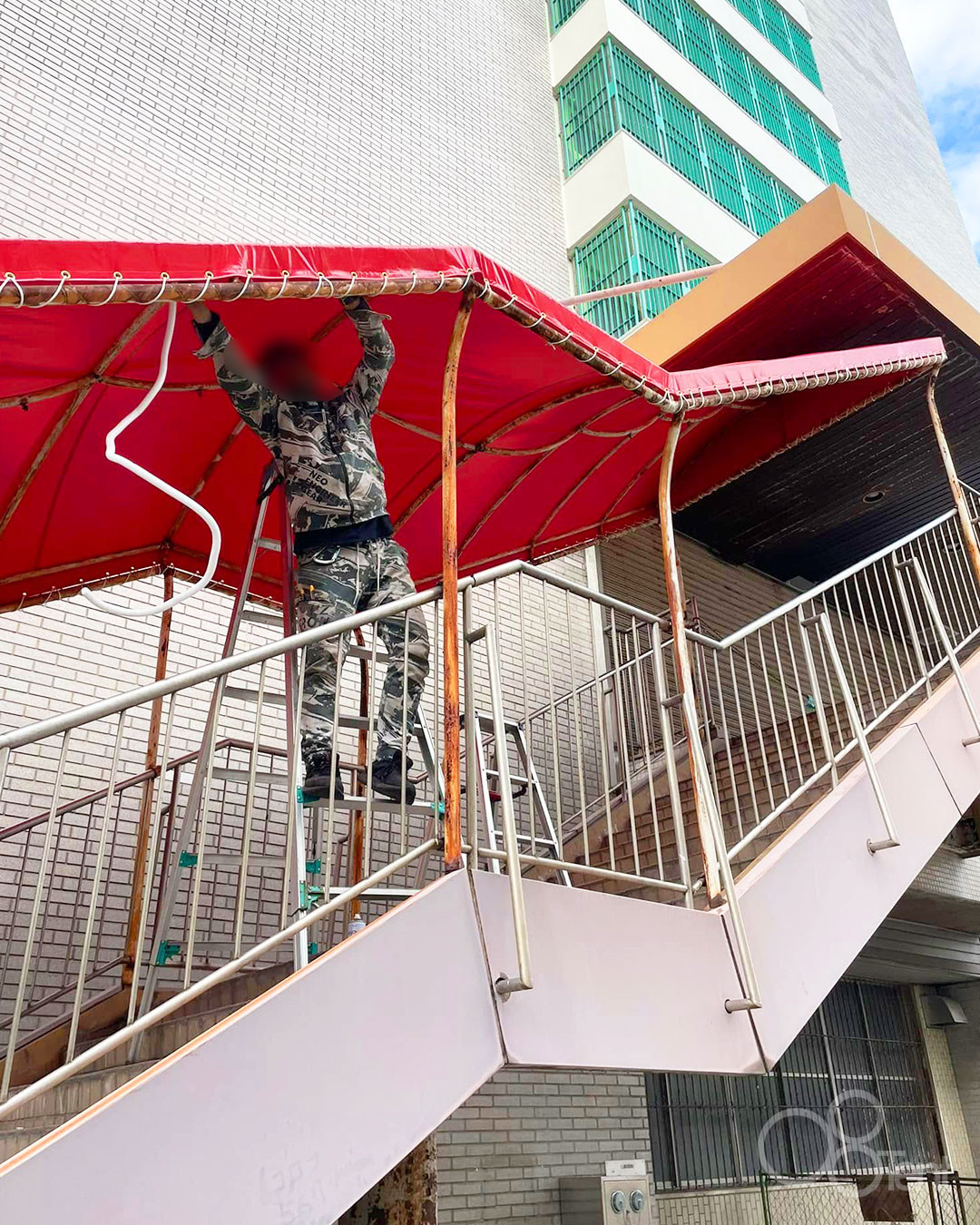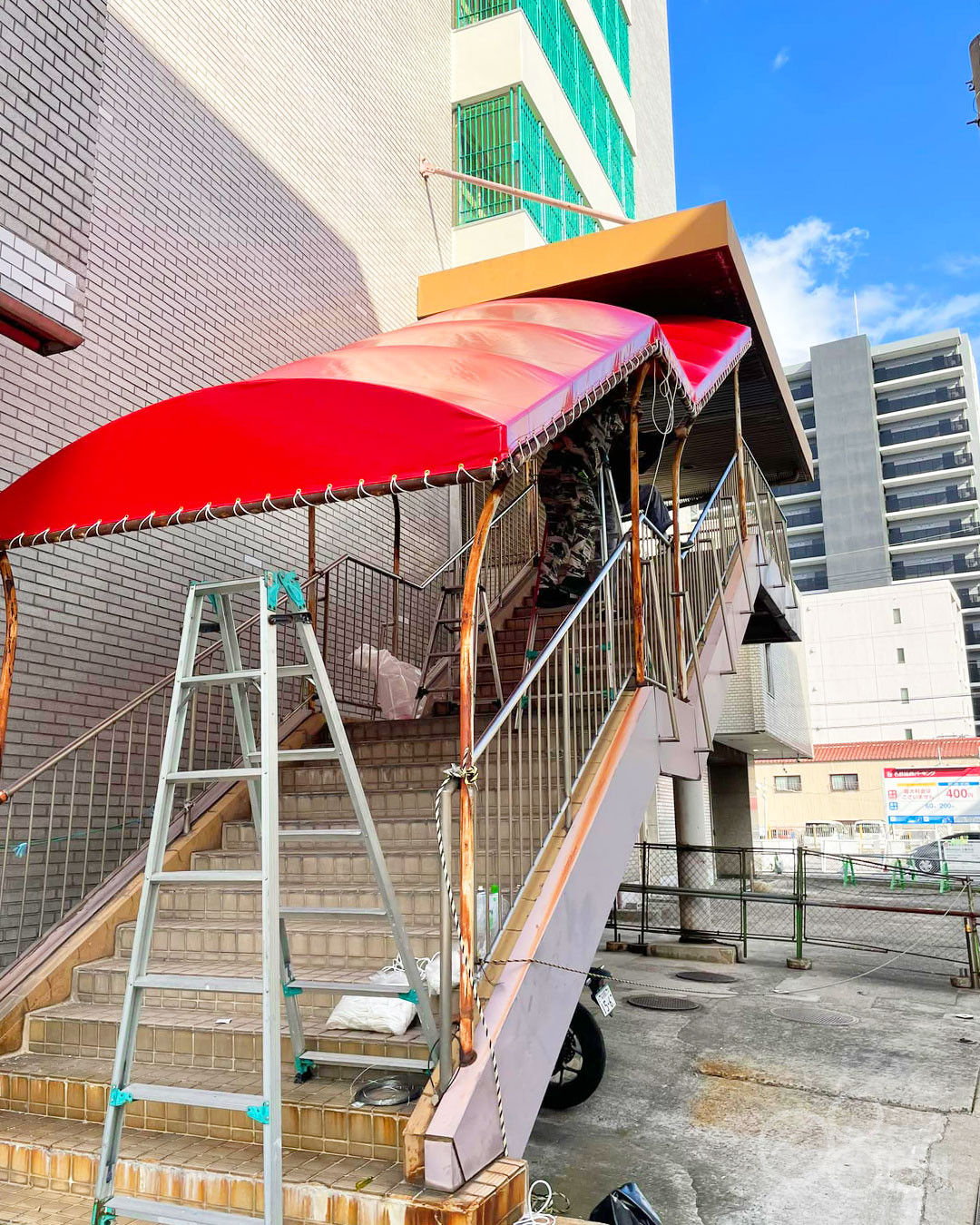 階段屋根テントのシート張替え|愛知県名古屋市