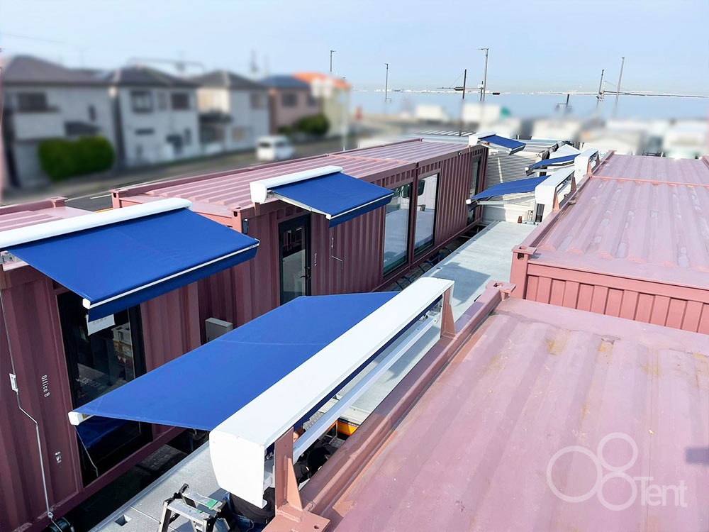 「オーニング」は、日除けを目的としたシート製の可動式屋根です。オーニングは窓面など開口部の外部に取り付けることにより、直射日光を遮蔽し、室温の上昇を防ぐのに大きな効果を発揮します。お店の名前やデザイン性を上げる要素としてレストラン、カフェテラスなどの店舗を中心に日よけ・雨除け・看板的要素として人気があります。