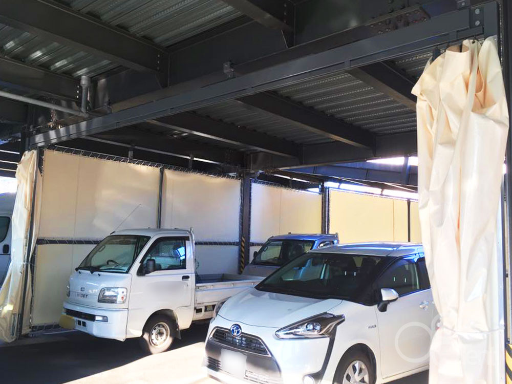 駐車場にシート間仕切り壁・芯材入りカーテンを新設|愛知県豊田市