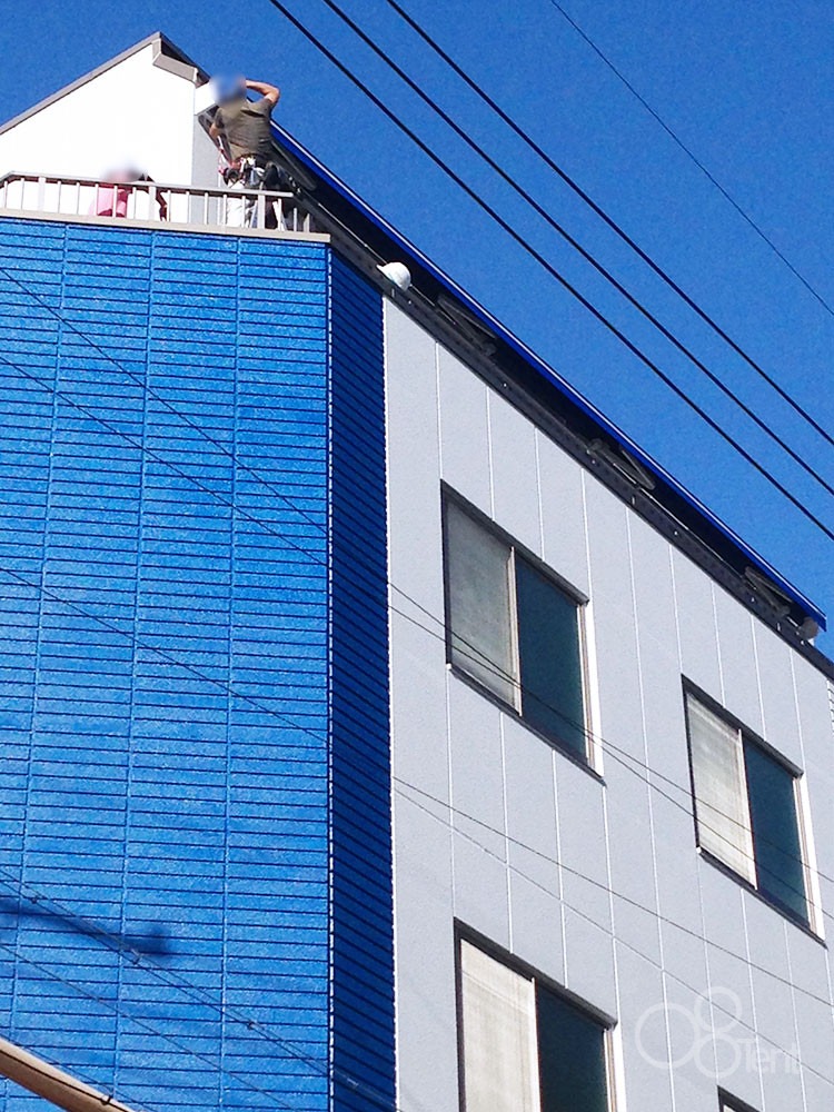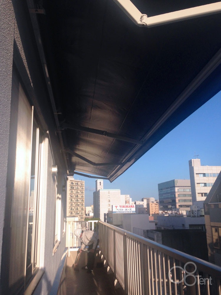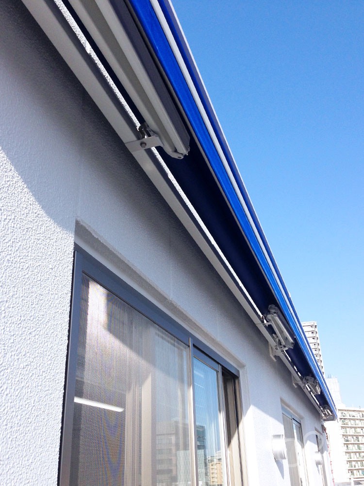 オーニングをビル最上階のバルコニー庇に新設にて施工いたしました。