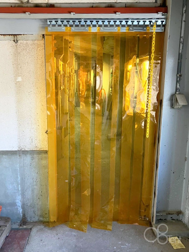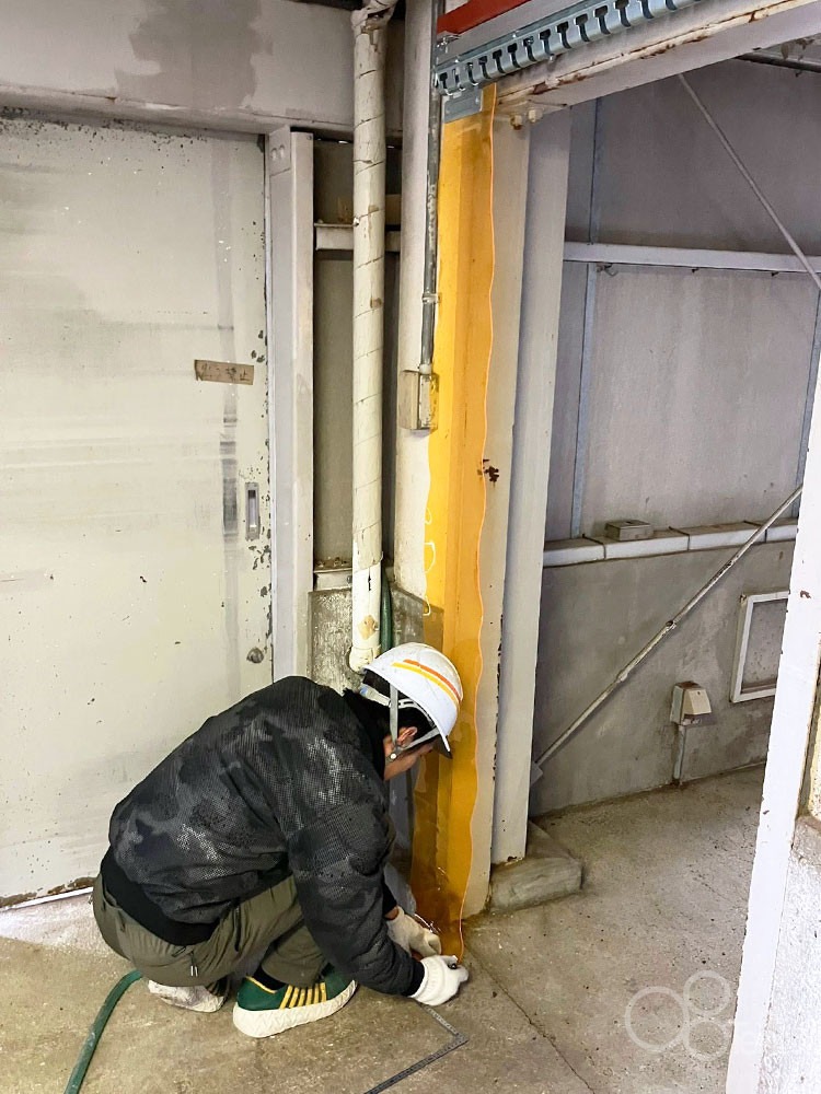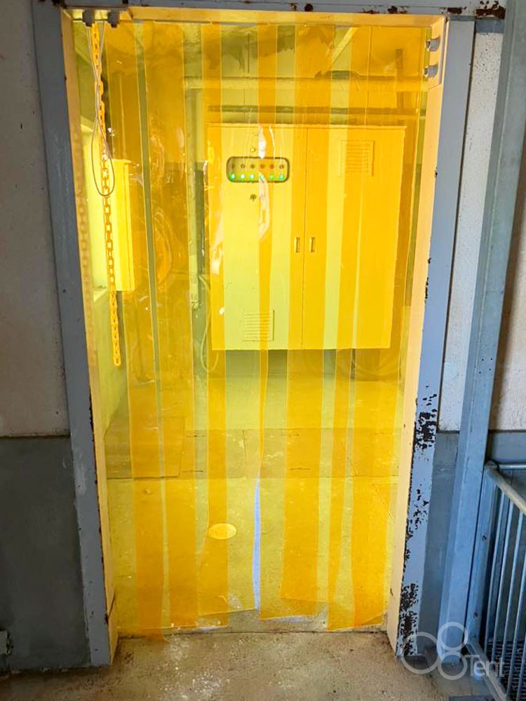 のれんビニールカーテンを農場試験場・研究棟の通路出入口に施工いたしました。