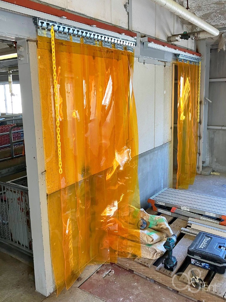 のれんビニールカーテンを農場試験場に施工