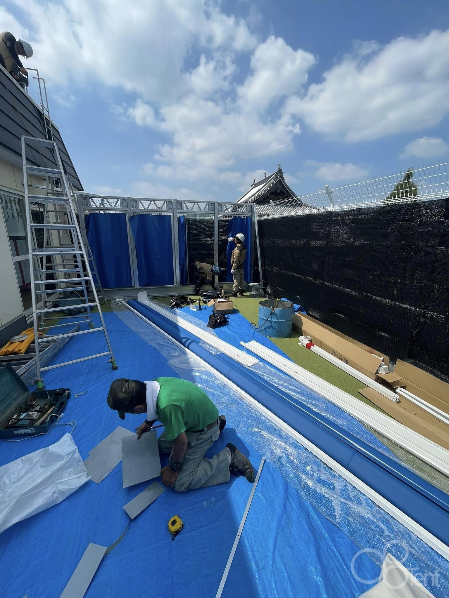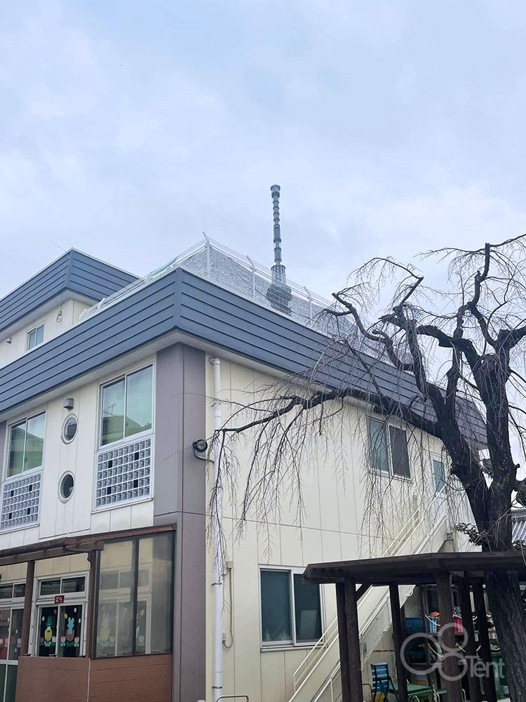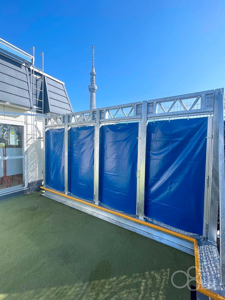 幼稚園屋上園庭に目隠しカーテンを施工|東京都墨田区