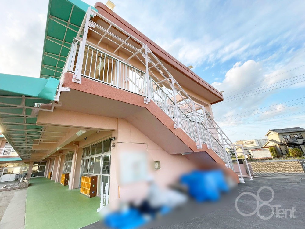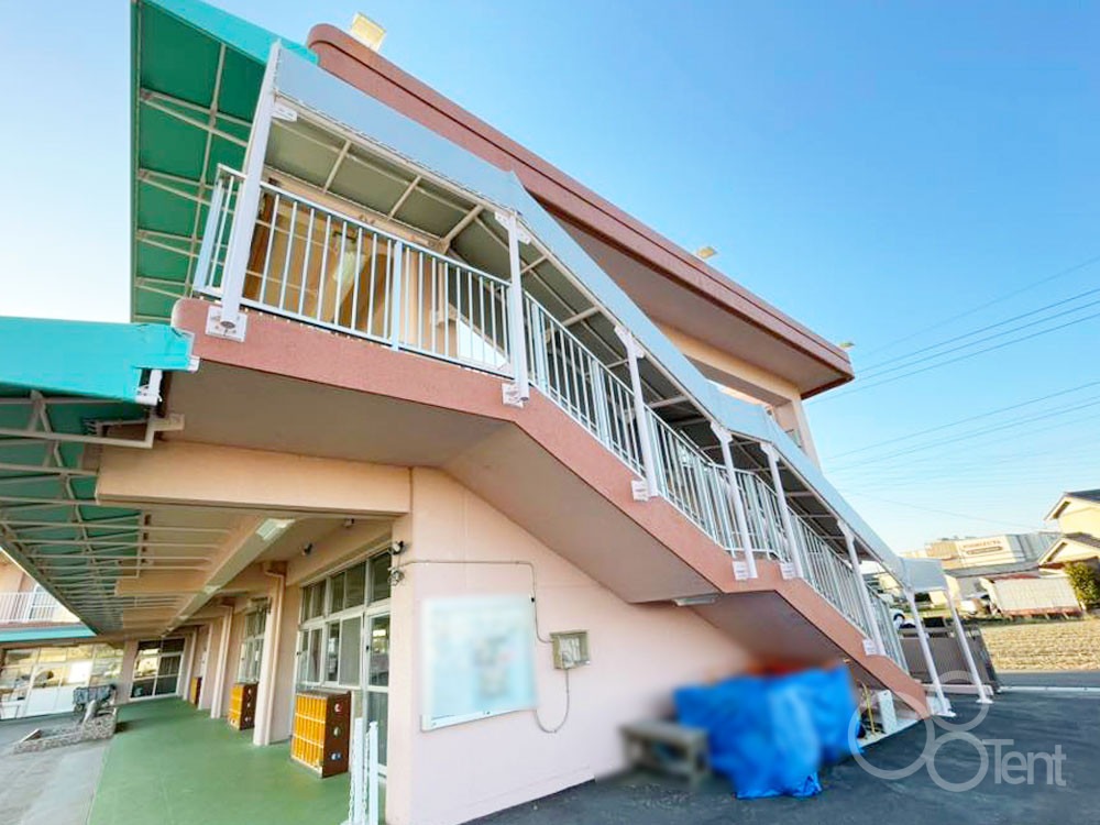 こども園の外階段に雨よけ屋根を施工