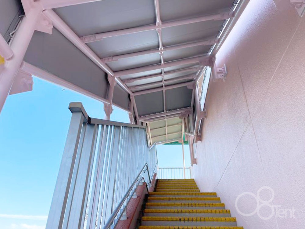 階段テント屋根の施工詳細