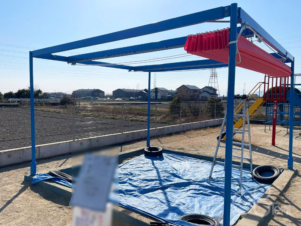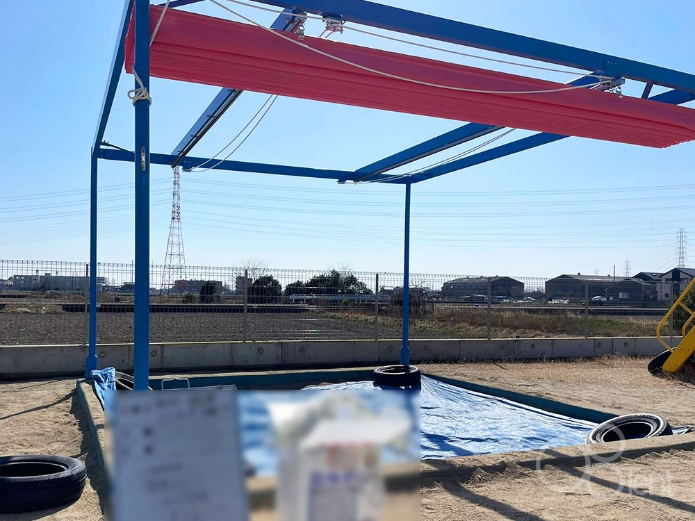 こども園・砂場エリアのシェードを開閉式シェードへ改修施工