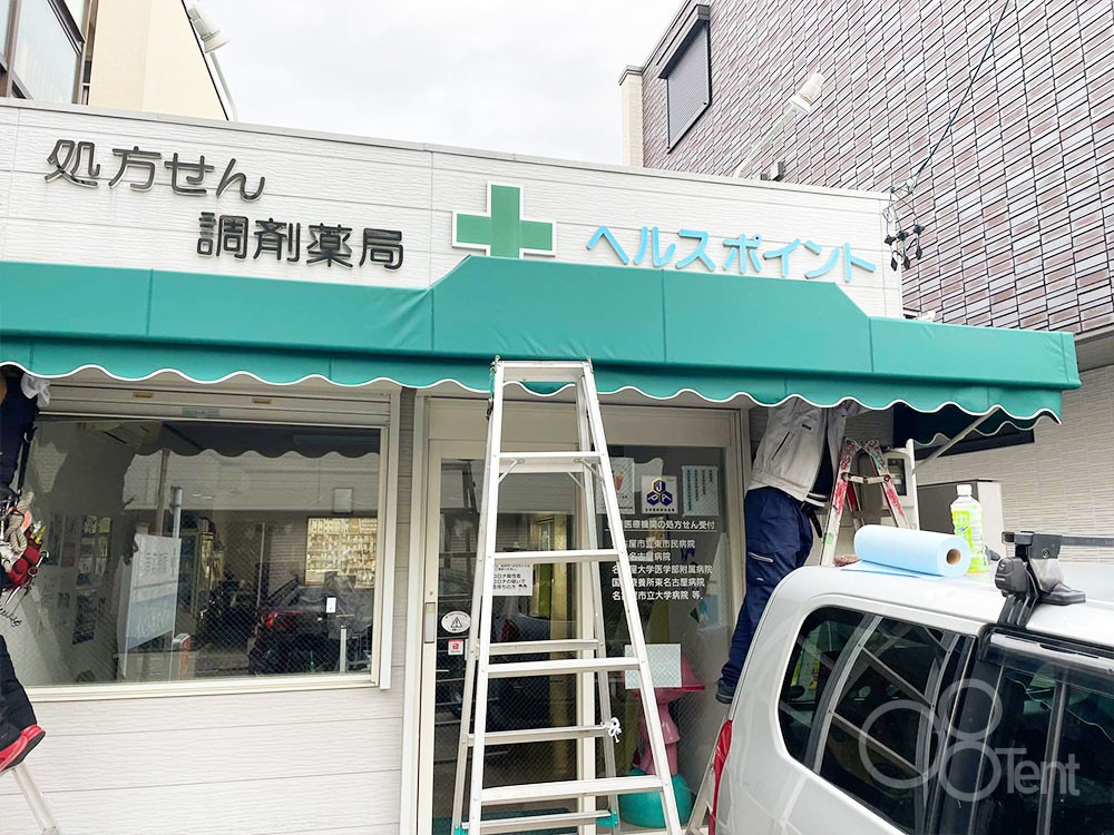 薬局の店舗用テントのシート張替え|愛知県名古屋市