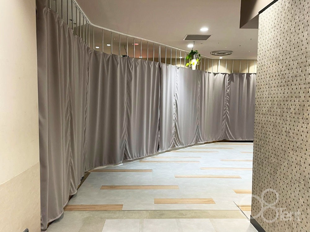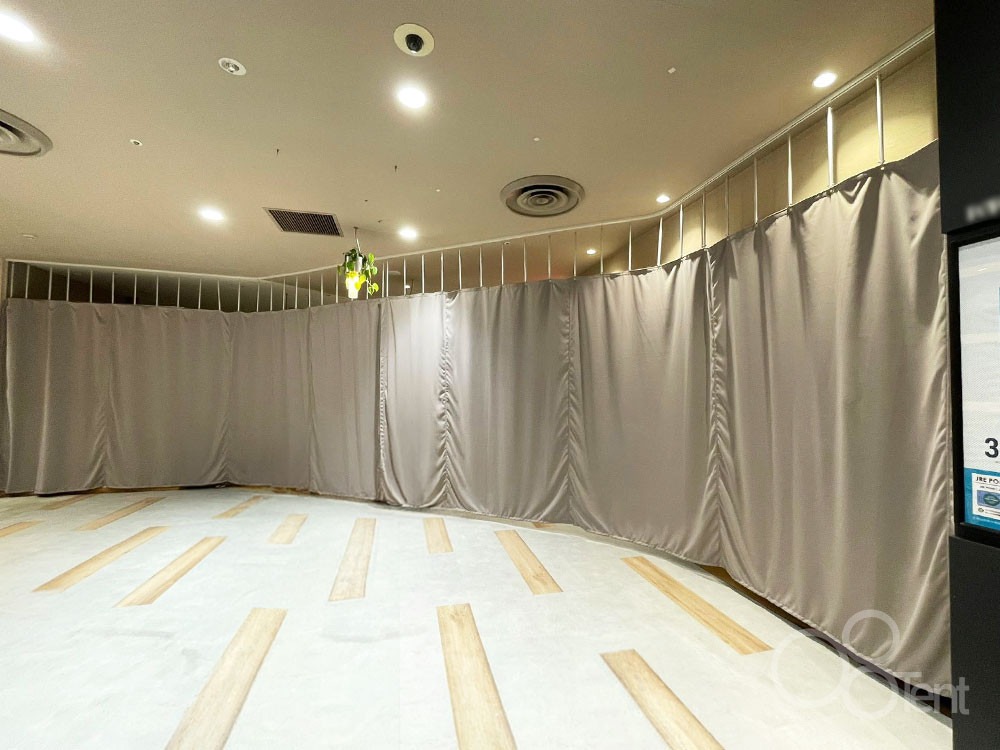 商業施設内テナントの営業時間外用間仕切りカーテン(屋内用・防炎・遮光)新設施工|千葉県千葉市