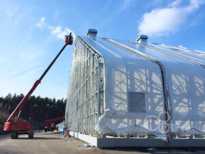 庇テントの施工詳細 工場出入口に雨よけ用の庇テントを新設いたしました。 以前施工させていただいた電動シートシャッターが直接雨に当たるのを防ぐため、今回庇テントを新設いたしました。 以前こちらの出入口に施工させていただいた […]