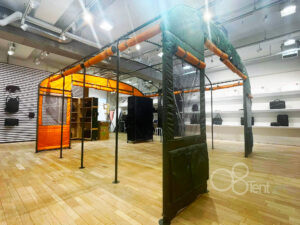 ディスプレイ用フレームの詳細 意匠性のあるディスプレイ用フレームを特注にて製作いたしました。 製作したフレームを納品場所で組み立てました。商品ディスプレイや、オフィス内の空間演出・装飾として使用されるそうです。